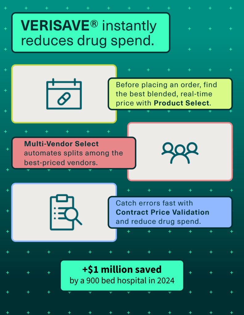 Feel confident you’re making the smartest purchasing decisions by generating blended orders based on the lowest prices, choosing the best priced NDC from your contracted vendors, and placing new orders with automated splits. The Verisave suite includes powerful solutions like Contract Price Validation (CPV), which quickly identifies errors between contracted and invoiced pricing.